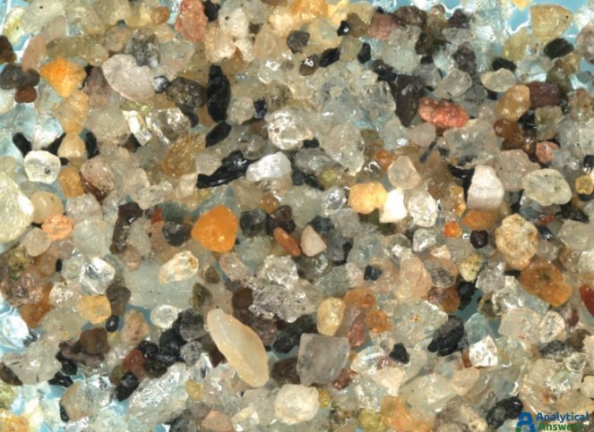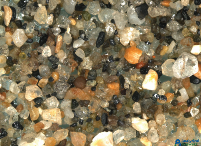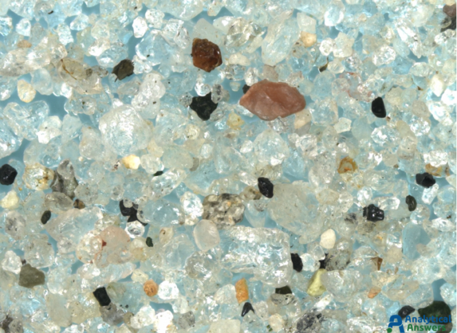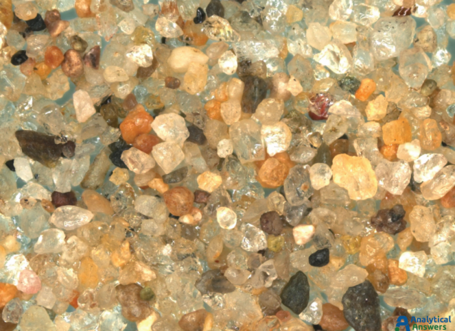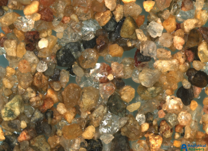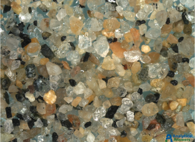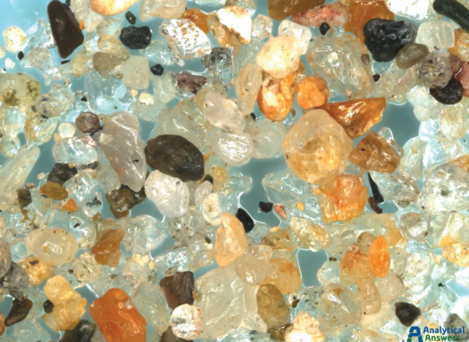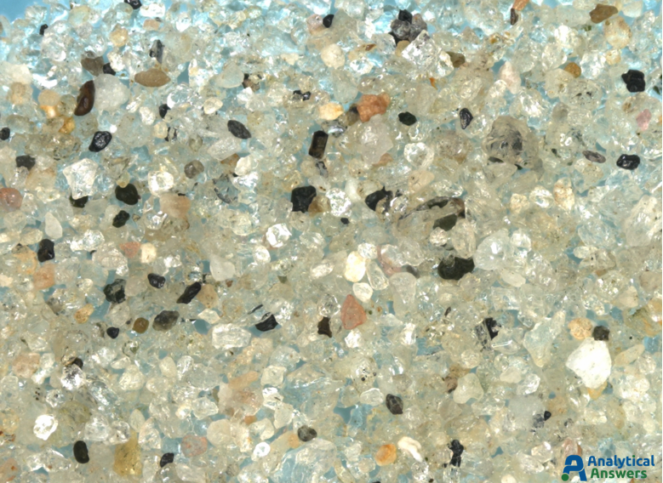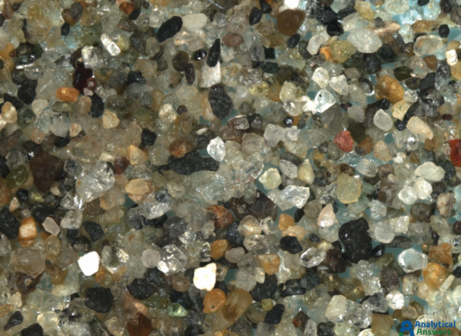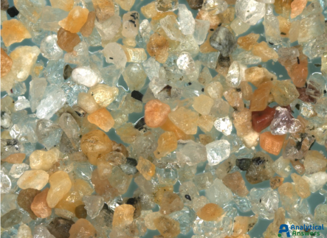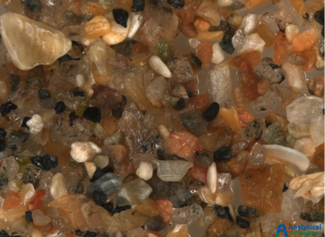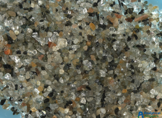 Each of the Extended Focus images are a composite of between 90 and 125 optical microscope images taken under comparable lighting conditions. Extended Focus mode allows us to keep all features in these 3-dimensional sample in focus through a depth of more than 1 mm. All of the sands were imaged at an original magnification of 35X so that grain sizes and material “mixtures” could be directly compared.