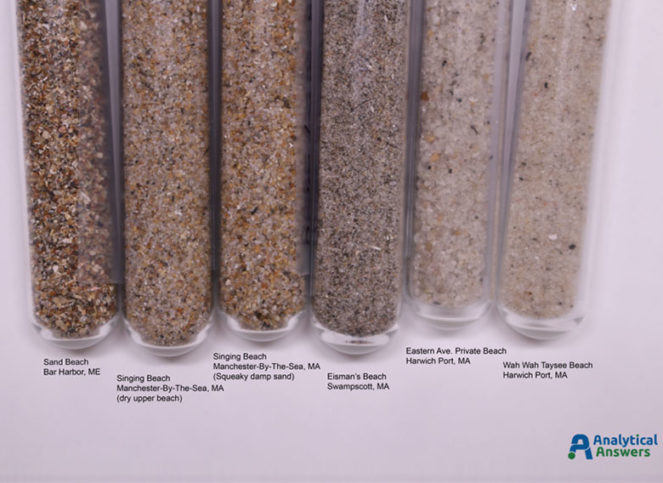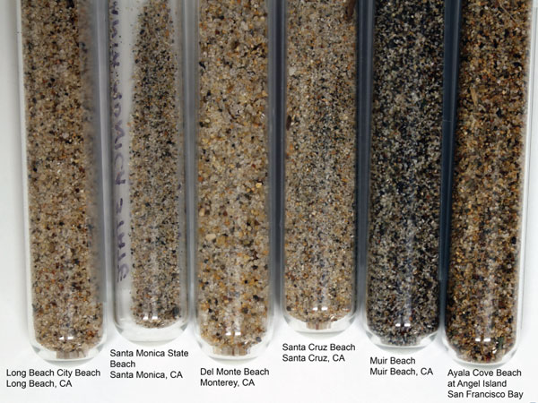 Now that summer has drawn to a close, we’re taking a look back at some beaches that we visited this summer. Noting that the sand looked and felt different from beach to beach, we sampled a bit of sand from each – and later, from beaches on the west coast as well. The east coast samples were collected at various times through the summer. The California samples were collected in August and September on a drive up the coast from Long Beach to Tiburon.