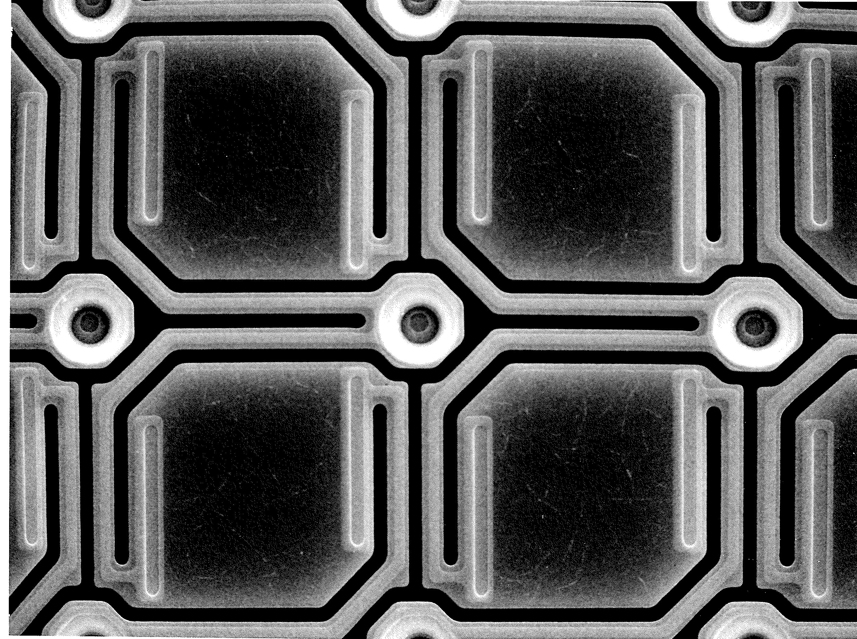 Mechanical polishing of samples in cross section is often needed to inspect or measure structures in semiconductor devices, or layers in plated or multi-layer materials. Samples are typically mounted in an epoxy and polished through a graded series of abrasive materials until a mirror-smooth surface is obtained. With our technology, we are able to achieve a precision lapped cross section through two (2) 25µm structures spaced approximately 25 mm apart.