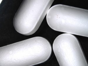 The data collected from the contaminant area showed the presence of two materials in the tablet matrix. The analysis identified the matrix itself as the first component, although the material was black instead of the normal pink color. The other component was a degraded lubricant used in the production line. This lead to the conclusion that the lubricant had thermally degraded and agglomerated. It entered the production process as small particles that mixed with the matrix material and, once thermally degraded, resulted in the small black particles that were observed.